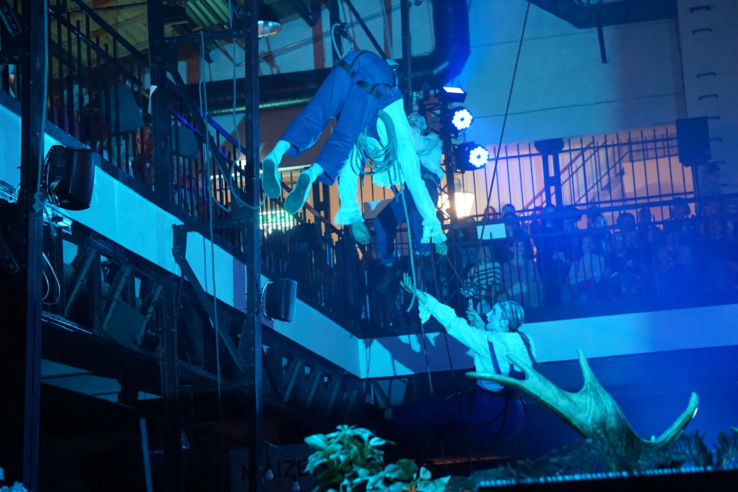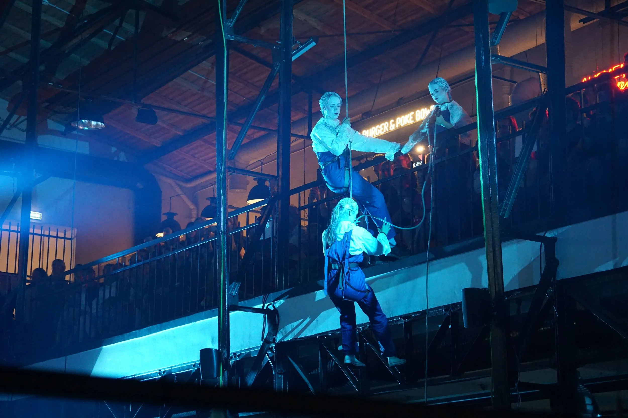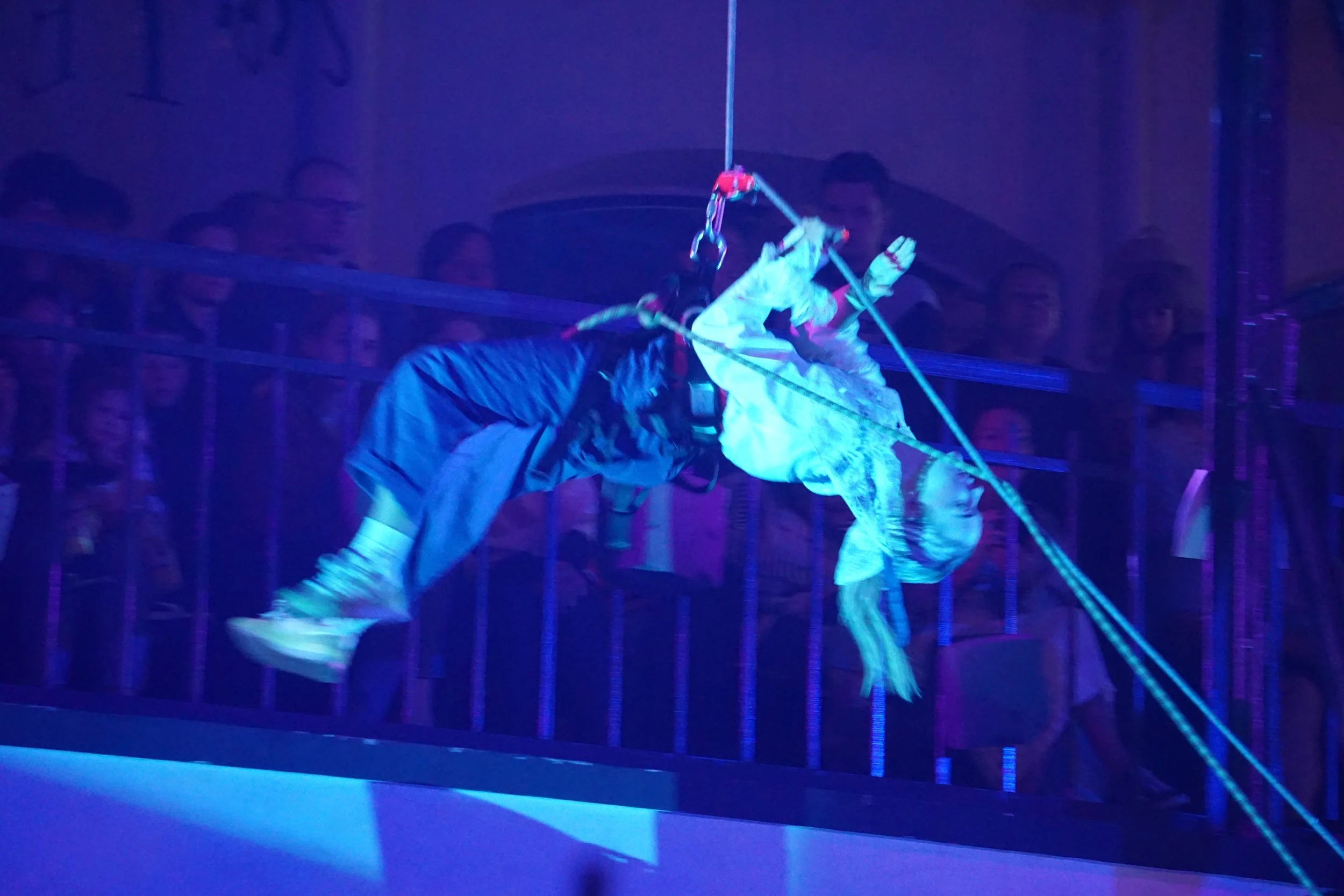 Stundu garajā iestudējumā laikmetīgās gaisa dejas un cirka elementi apvienojās ar baroka mūziku, stāstot stāstu par pasaules kontrastiem. Kā viens no būtiskākajiem scenogrāfijas elementiem iestudējumā bija dejotāju atbalsta sistēmas – virves, stiprinājumi un citi drošības mehānismi, kas it kā pazūd skatītāja acīm brīdī, kad ļaujamies noticēt mākslas brīnumam. Jaundarbs tiešā veidā atspoguļoja 2023. gada “Baltās nakts” tēmu – apslēptās patiesības. Iestudējums tika veidots īpaši Āgenskalna tirgus paviljonam, kura arhitektūra un atdzimšanas stāsts paspilgtina mākslinieciskās komandas izvirzītos jautājumus.